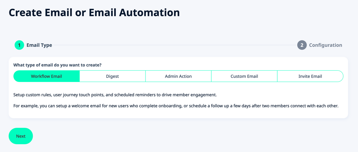 - choose an existing Email Template to modify or Create a new Workflow Email at the bottom