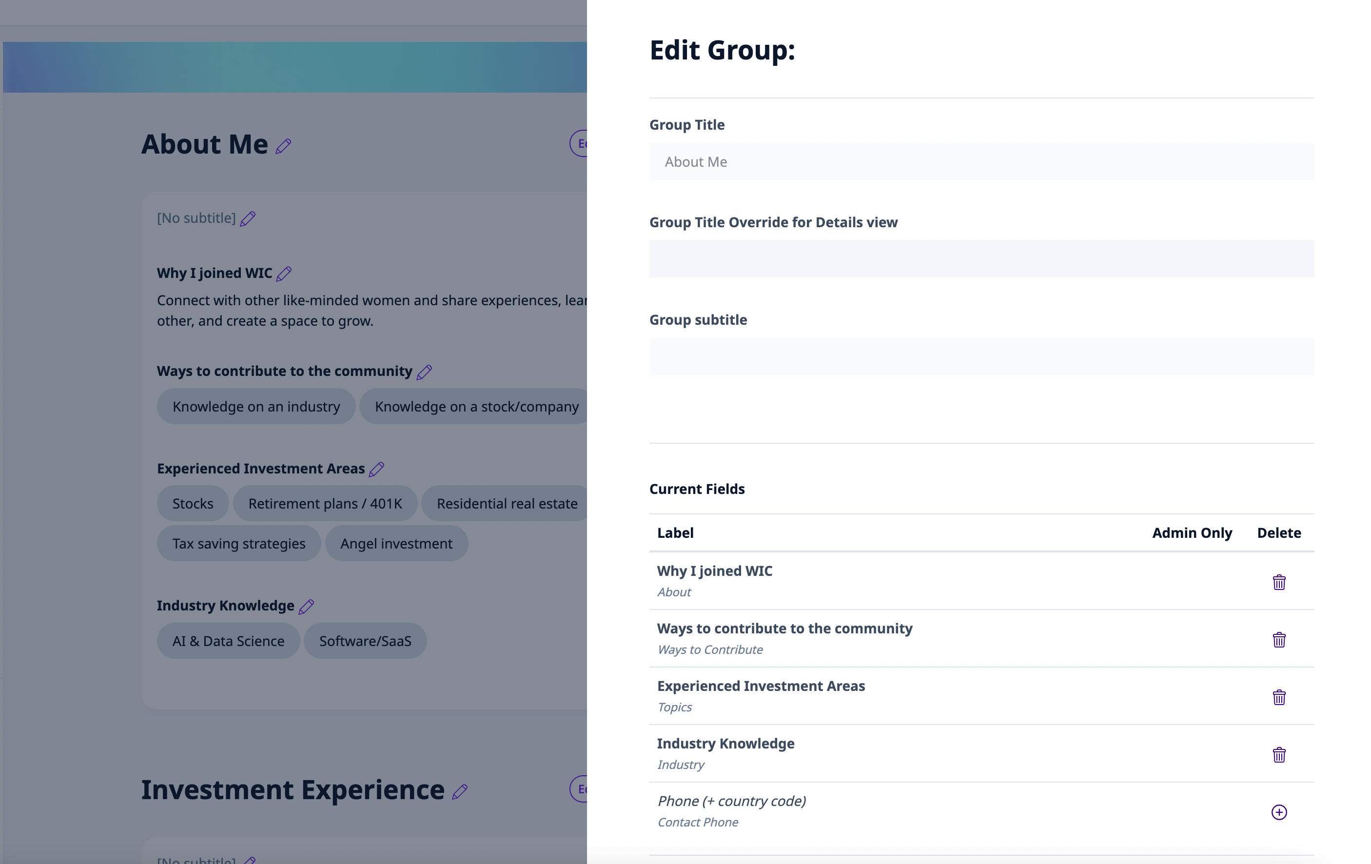 • click the Edit Group Fields button to select which of the Profile fields do you wish to show up on the Micro Page version