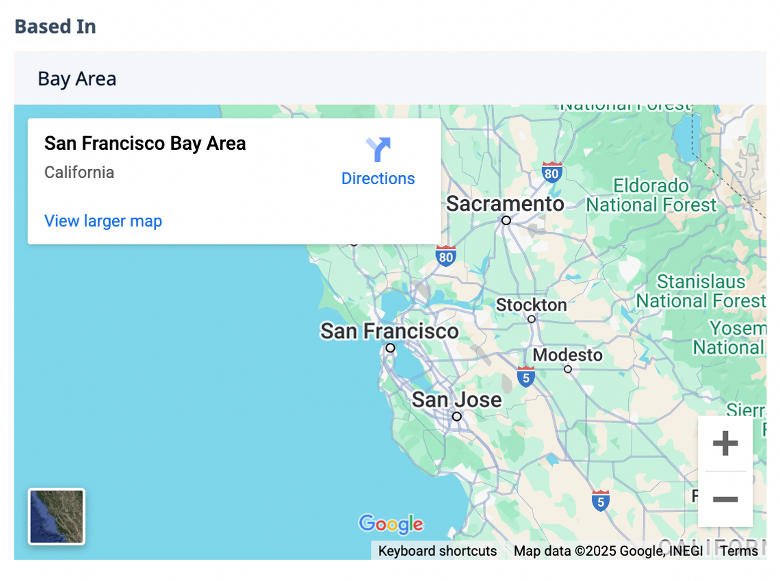 For example, if you Data Load example user Alice's profile with "Bay Area", it will appear exactly as entered in the Directory. However, note this: