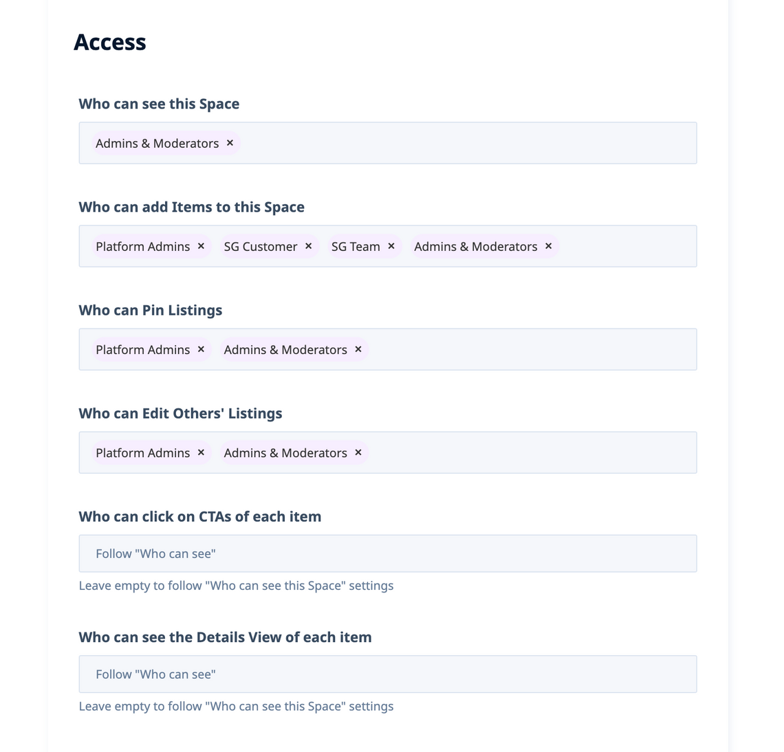 And in here, you can absolutely configure Who can see this Space to be more restricted than Who can add Items to this Space – simply assign exactly the sets of User Groups you wish to be able to do these actions.