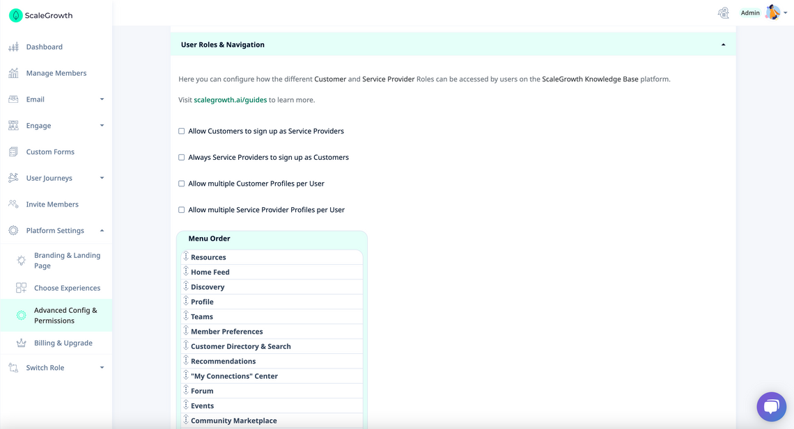 • If you have 2-Sided Marketplace enabled on your ScaleGrowth platform, this will also affect the Menu order for your Providers.