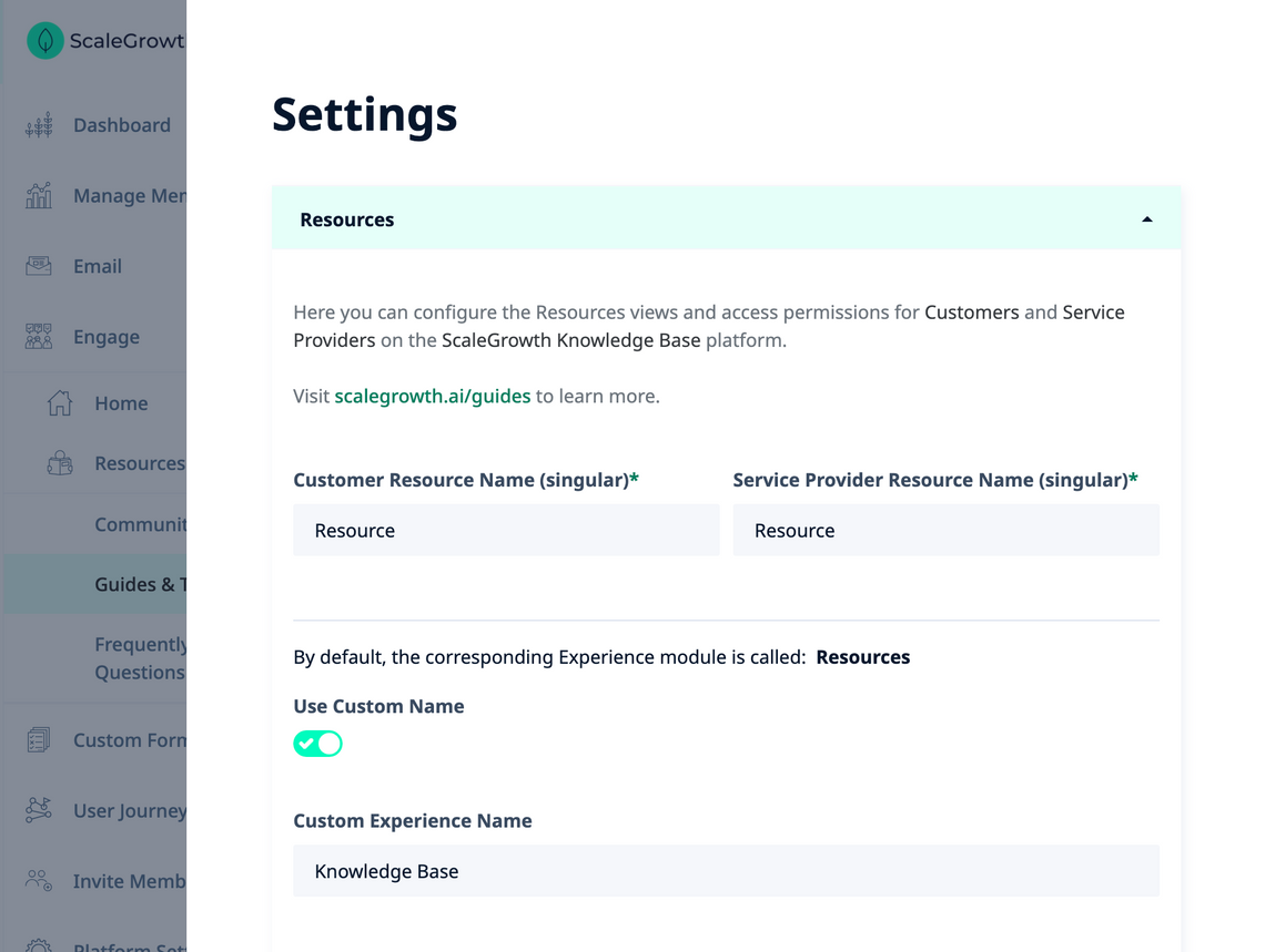 • For example, here is how to rename Resources to "Knowledge Base":